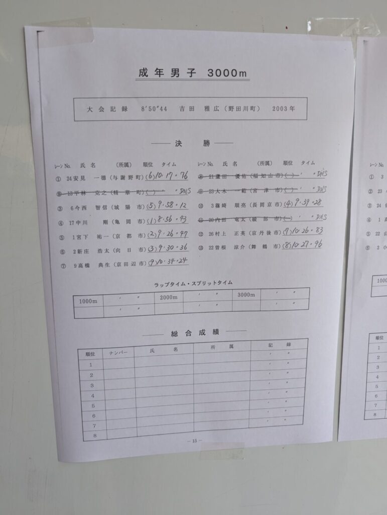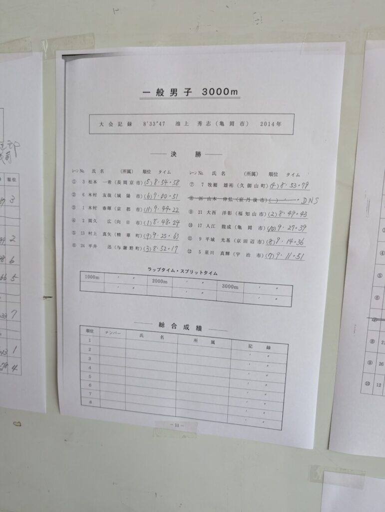 | 成年男子3000m | 欠場 | 平林 克之 |