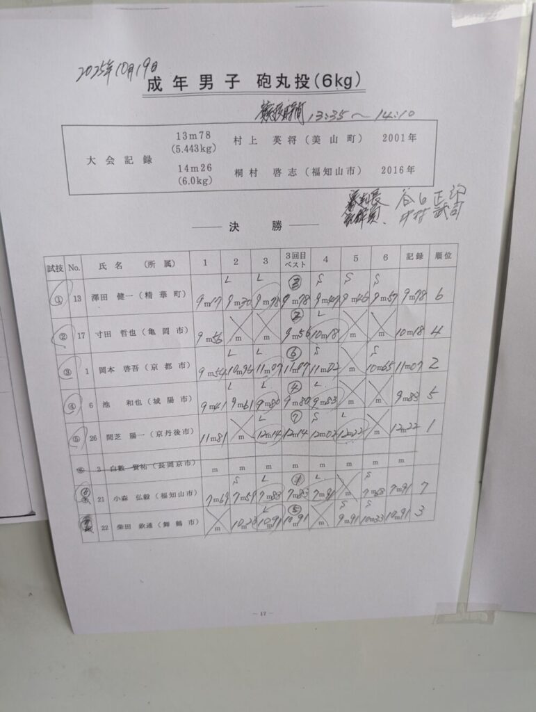 | 成年男子砲丸投げ(6㎏) | 6位 (記録:9m78) | 澤田 健一 |