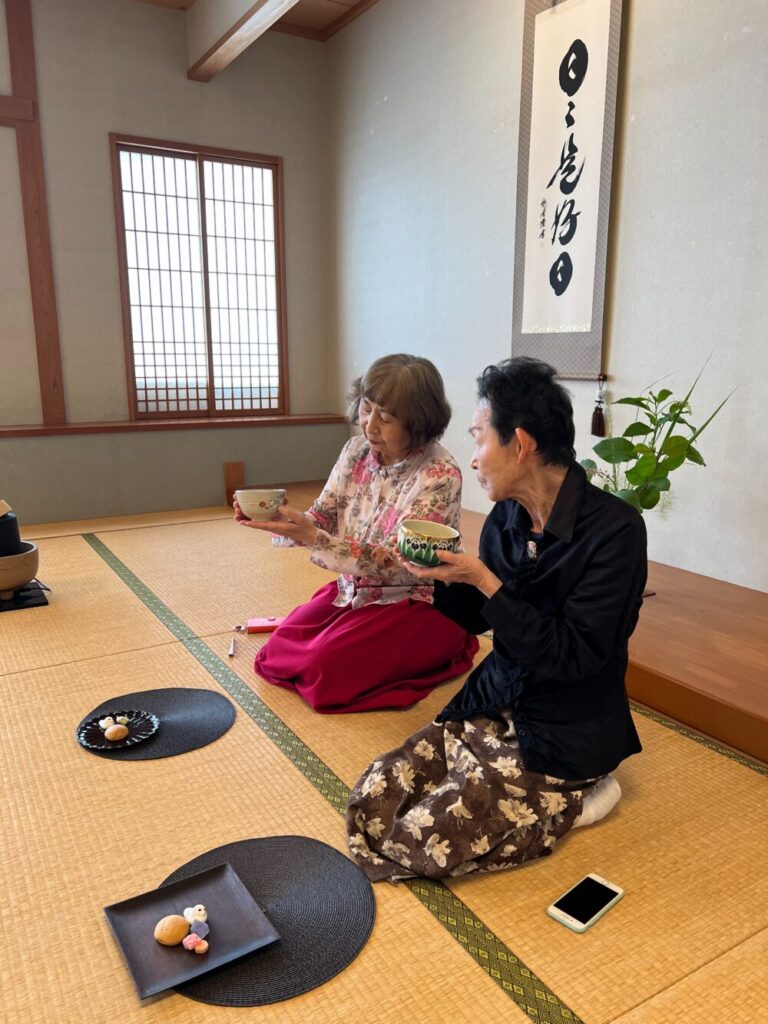 むくのきセンターの広い和室で、茶道具を使ってお抹茶を点ててみましょう。