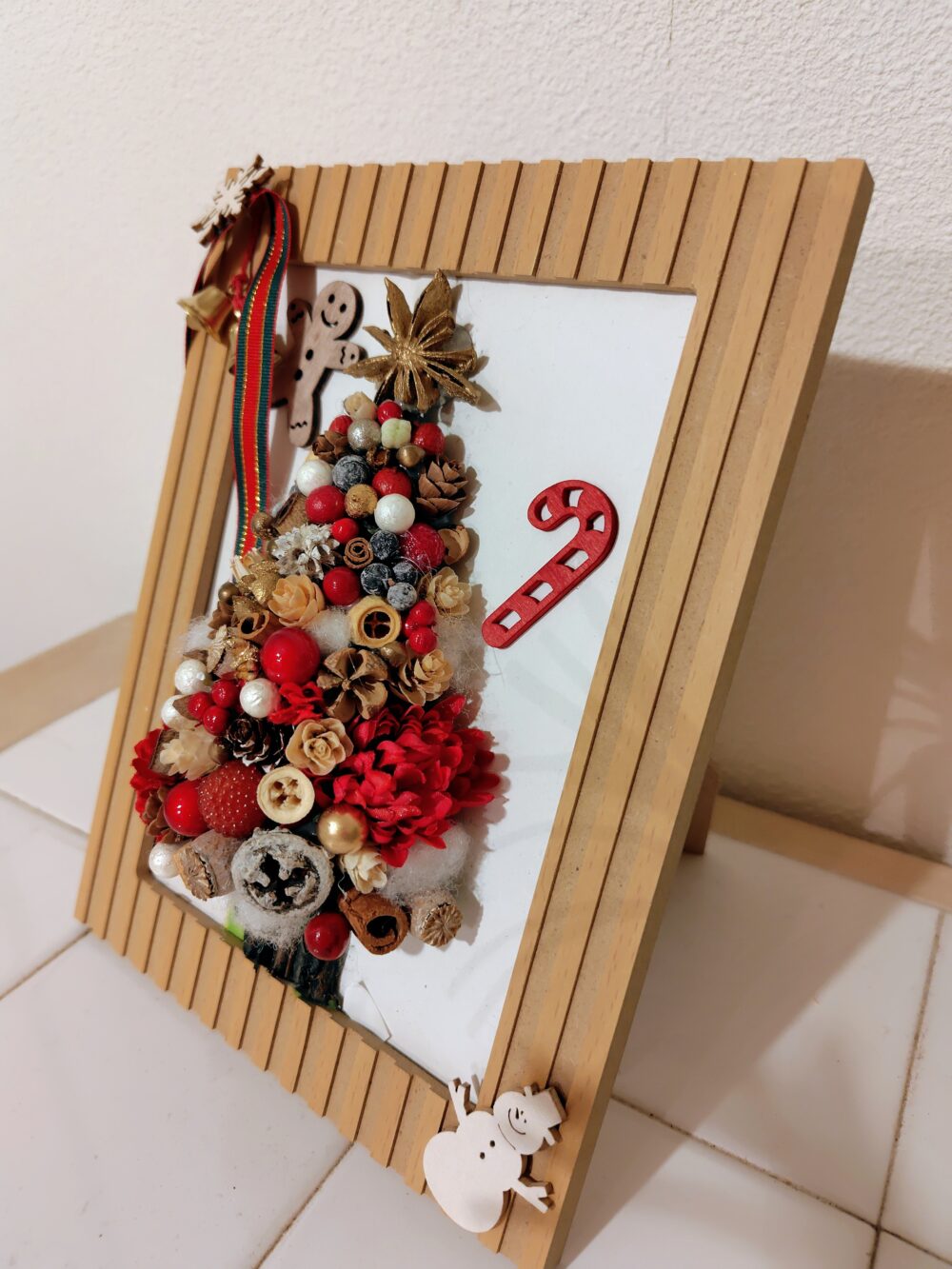 フラワーアートを使用して、フォトフレームをクリスマス仕様にアレンジメント!