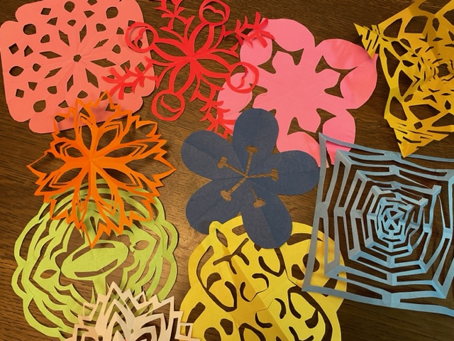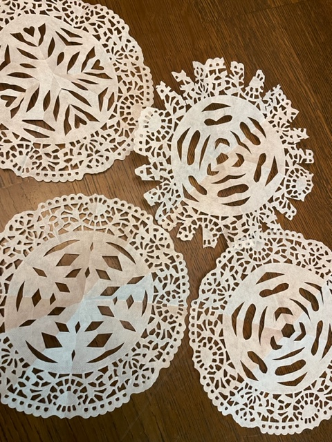 折り紙、レースペーパーなど、色々な紙で切り紙を作ってみましょう。