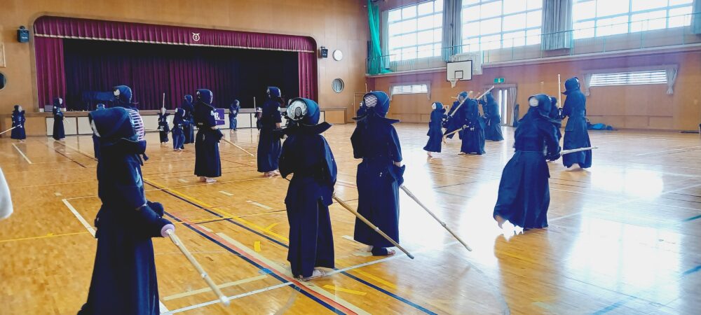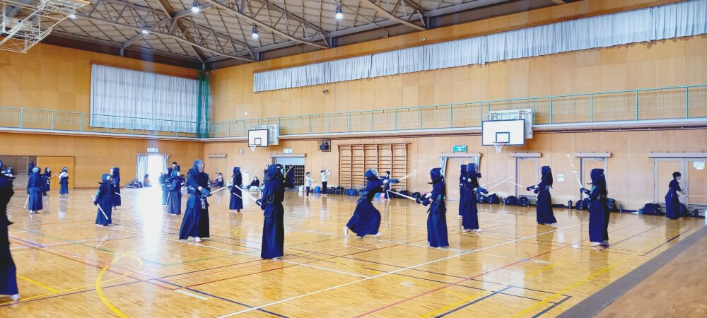 道場生以外の参加者が少ない中、通常通りの稽古を行いました。各地区大会などの試合が一段落した事から基本稽古を中心に行った後、出鼻技である出鼻面、出鼻小手を重点的に稽古をしました。その後は引き胴を効果的に打つ足捌きなどの解説を行なって自由稽古を行いました。また、稽古の最後には掛り稽古を取り入れて体力強化に努めました。