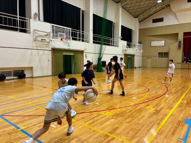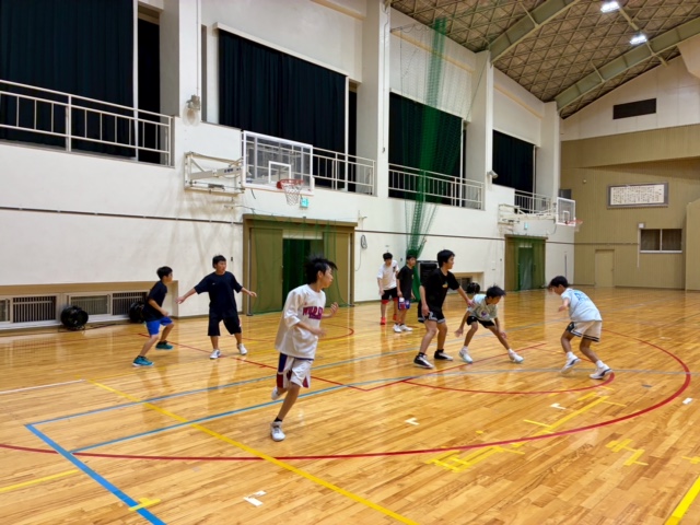 今回はディフェンスされたときのピボット練習を追加しましたが、練習経験が少ないのかどうしても歩いてしまったりバランスを崩す子がいました。このような地味な基礎練習を継続していく必要性を感じ、楽しく続けるようなメニューを考えたいと思いました。